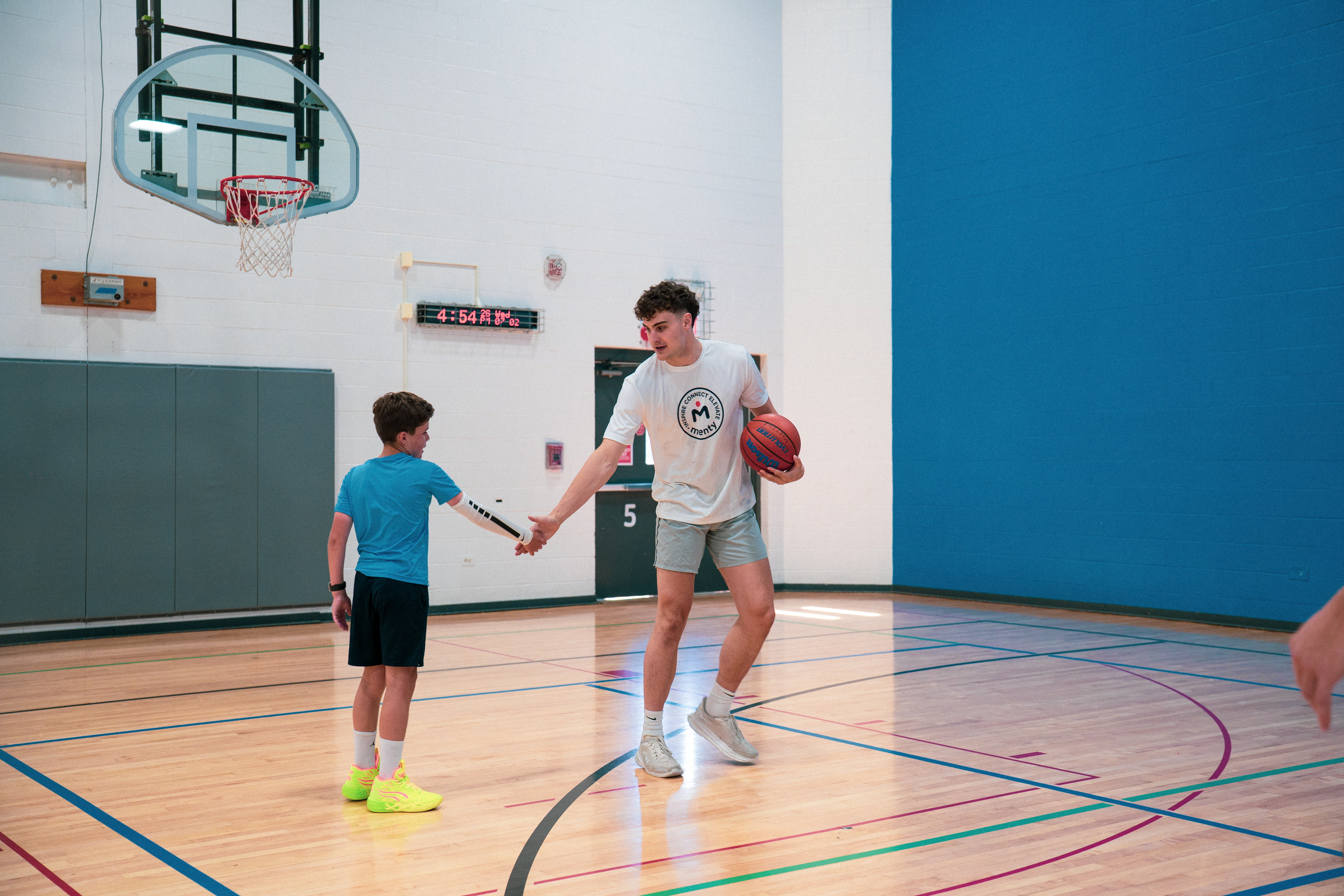 The unreplaceable version. Court, field, pool, track, gym — wherever the work happens. Mentors run sessions at their own facility or meet at yours. Eye contact, tempo, a hand on the shoulder when the rep goes wrong.